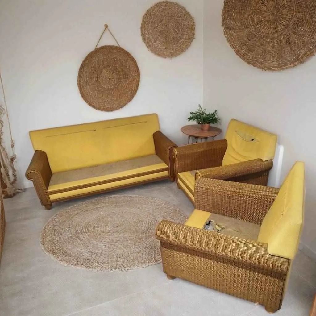 SOFÁ Y 2 SILLONES DE MIMBRE