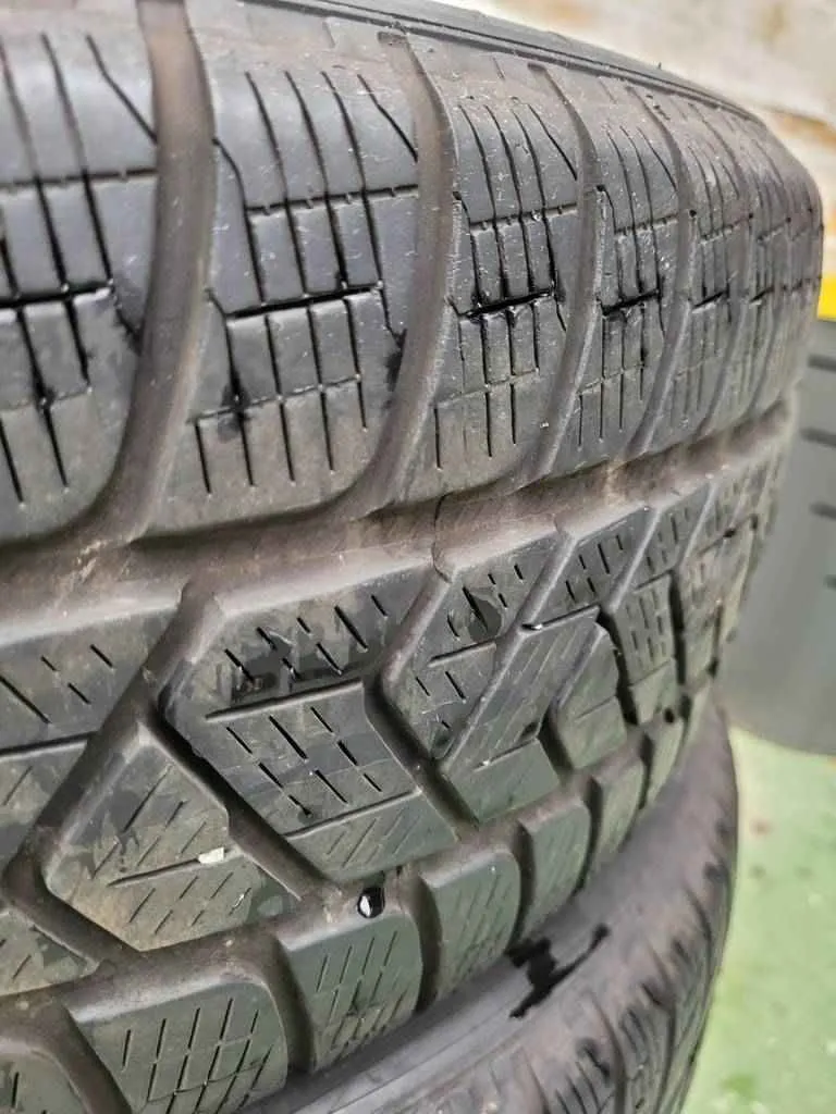 Cuatro neumáticos modelo Pirelli Scorpion Winter 225/55 R19 99H. Se trata de un neumático de invierno para coches tipo SUVs y Crossover. Este neumático es ideal para conductores que usan su coche de forma diaria y buscan el mayor control en temporada de invierno. Se caracteriza por permitir afrontar sin miedo pendientes y curvas en las peores condiciones invernales. Como podemos observar en las fotografías se encuentran un poco desgastados.