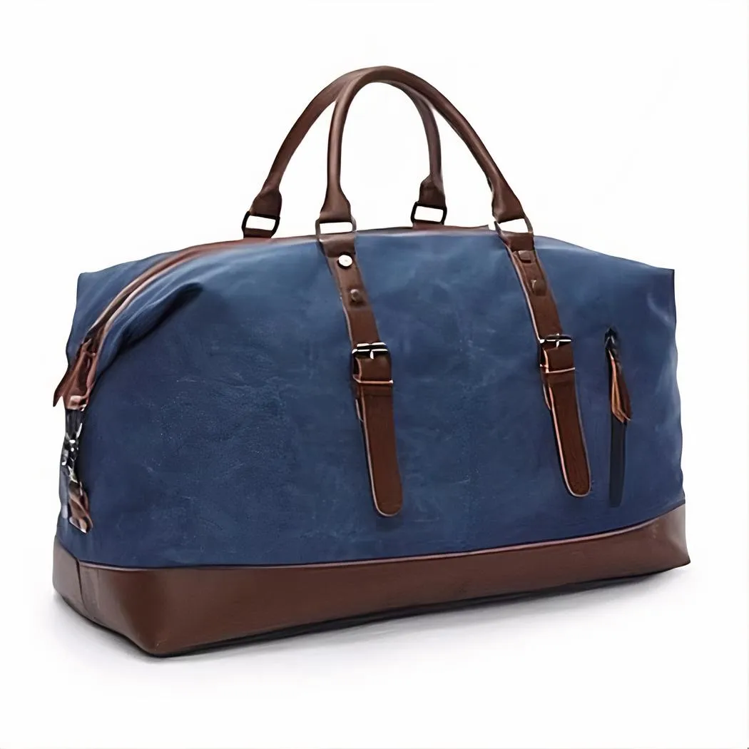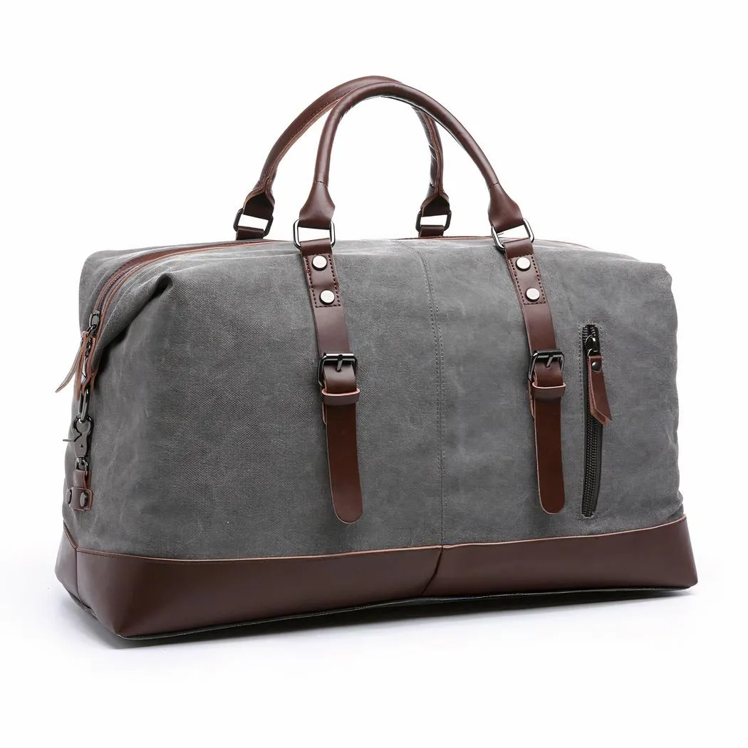 Esta bolsa de viaje tote de lona para hombre es el accesorio perfecto para los hombres a los que les encanta viajar. Fabricada en lona resistente y duradera, esta bolsa tiene una gran capacidad y prácticos bolsillos interiores y exteriores para guardar todas sus pertenencias.