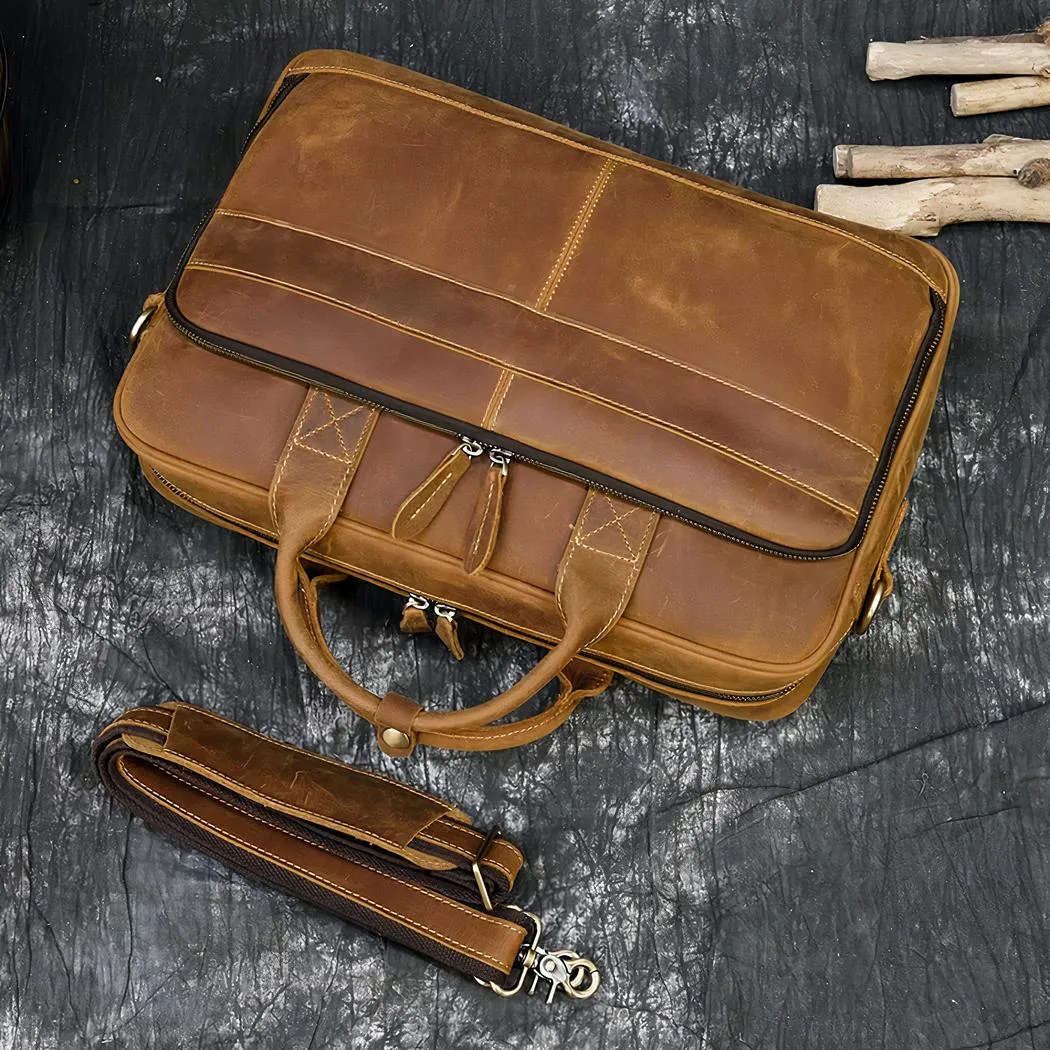 Esta bolsa satchel masculina de estilo vintage dará el toque final a su look. Ideal para un portátil de 15,6″. Esta bolsa tiene mucho espacio de almacenamiento, con un compartimento grande en la parte delantera y dos en el interior, además de un pequeño bolsillo con cremallera.