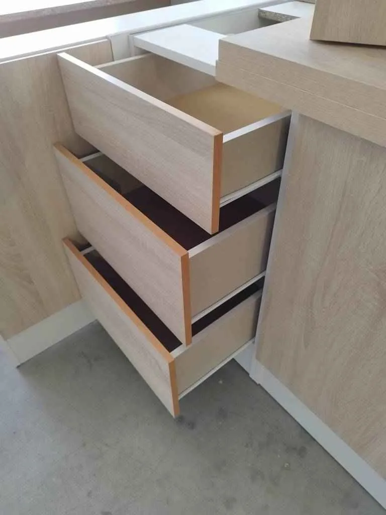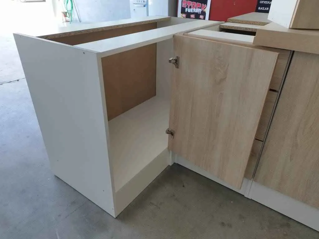 📐 Medidas parte superior: armarios 1 puerta (ancho x fondo x alto): 50x32x70cm, 2 puertas 100x32x70cm, parte inferior: esquinero 110x57x85cm, horno 60x57x85cm, 2 puertas 100x57x85cm, una puerta 50x57x85cm y cajonera 50x57x85cm.