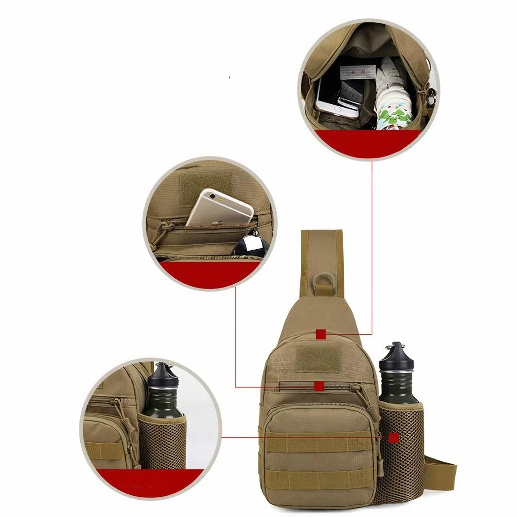 Esta mochila militar de un hombro con compartimento para botella de agua es útil y práctica, con espacio para una botella o cantimplora. Podrá hacer senderismo o participar en otras actividades al aire libre. Su correa ajustable para el hombro le permite ajustar la mochila para una comodidad óptima.