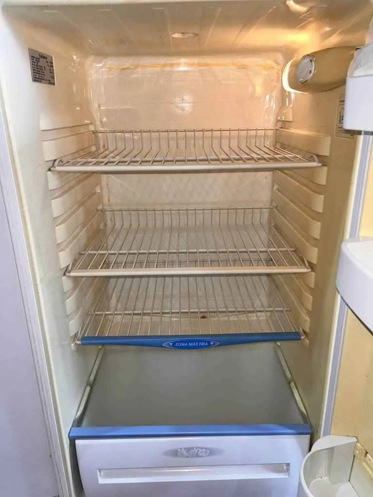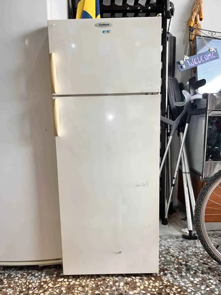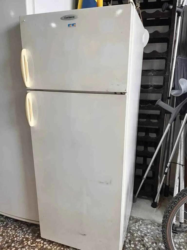 Nevera o frigorífico de la marca Corbero. Se trata de una nevera de color blanco que tiene una puerta superior pequeña que alberga un congelador con una leja de rejilla y una puerta inferior de mayor tamaño que alberga un frigorífico con tres lejas y un cajón para conservar alimentos por mayor tiempo. Es una nevera ideal para tenerla en cualquier cocina. Como se ve en las imágenes está en buen estado.