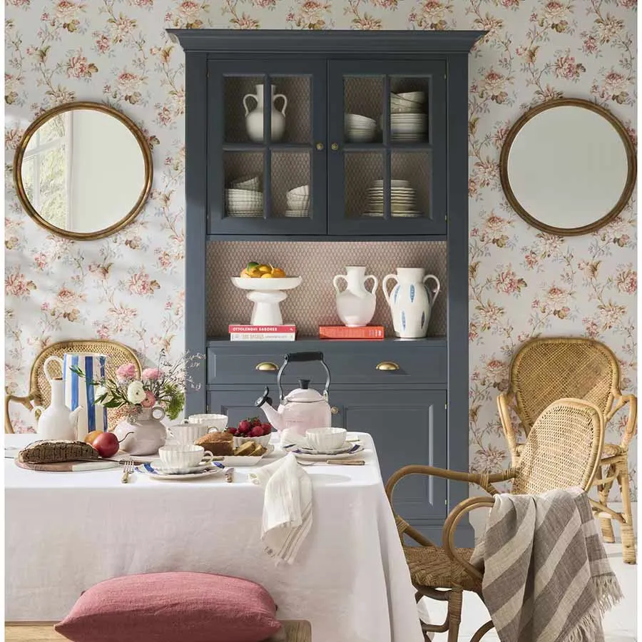 Papel pintado TNT (tejido no tejido) con estampado de flores y ramas.