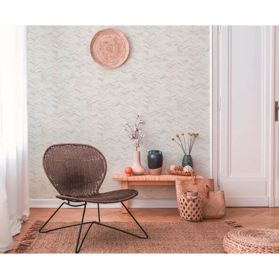 Papel pintado vinílico de base textil (TNT) de diseño geométrico.
