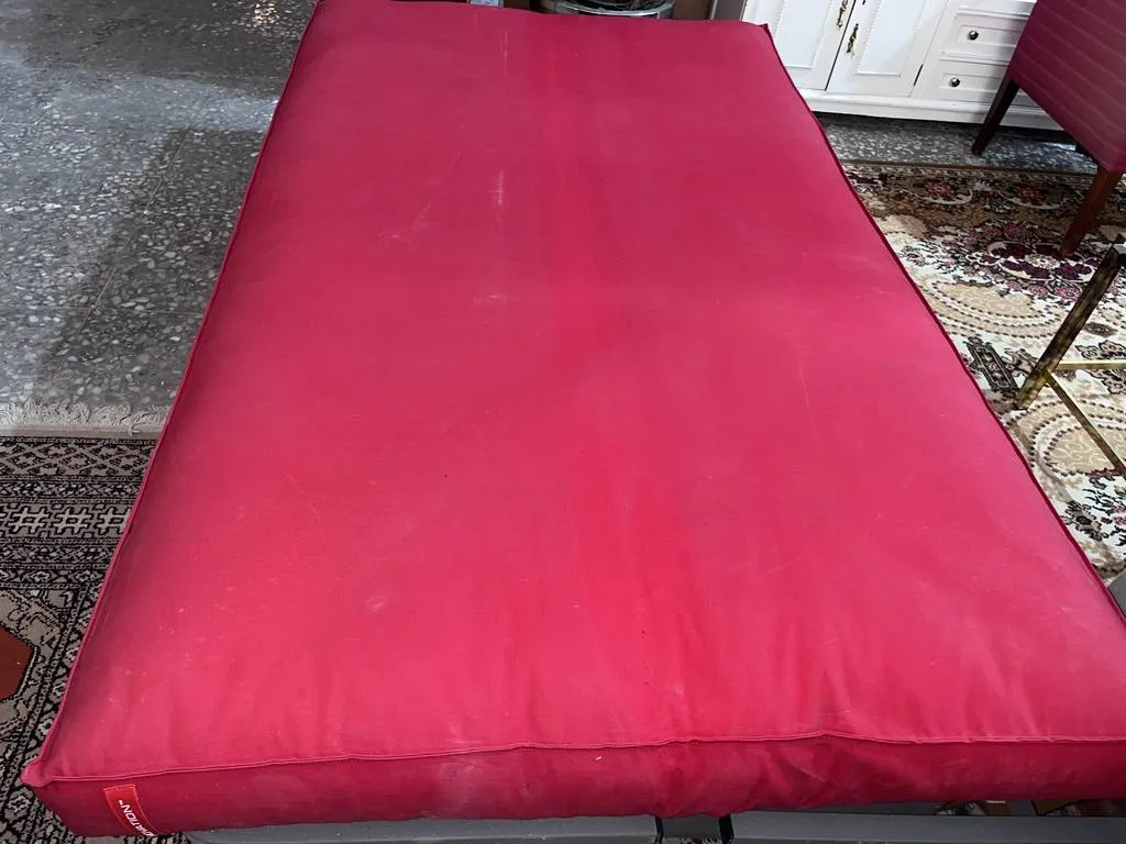 Sofá cama de grandes dimensiones. Se trata de un sofá de única pieza que es cómodo y acolchado con una tela suave y agradable al tacto. Su color lo hará resaltar en cualquier estancia. Se extiende a modo de libro convirtiéndose en una cama de 200x100cm. Es ideal para colocar en un salón comedor o habitación. Como podemos observar en las fotografías se encuentra en buenas condiciones.