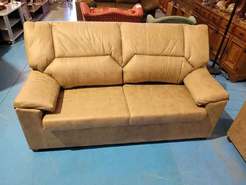 Sofá de 3 plazas nuevo a estrenar hecho de tela suave y agradable al tacto color marrón. Se trata del modelo Niza el cual tiene un diseño muy moderno, original y llamativo. Tiene los asientos y respaldos acolchados, así como reposabrazos en los laterales que lo hacen aún más cómodo. Es ideal para darle un toque moderno y original al salón de casa y también perfecto para sentarnos o tumbarnos en él a ver una buena película o descansar.