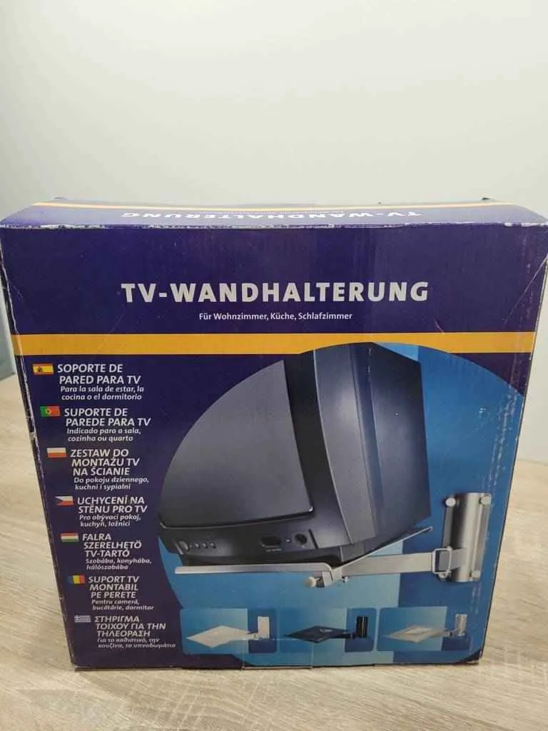 Soporte de pared para televisión, con la estructura robusta metálica. Sirve para colgar televisiones en la pared, ya sea en la sala de estar, en la cocina o en el dormitorio. Se entrega en su caja original, sin usar, como se puede apreciar en las fotografías.