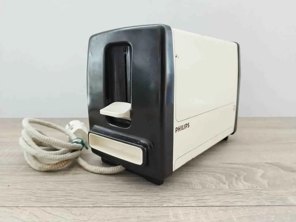Tostadora con dos ranuras para tostadas de la marca Philips de color blanco y negro. Se trata de una tostadora vertical con dos ranuras ideal para tenerla en la cocina de cualquier hogar para preparar las tostadas de las mañanas para el desayuno. Como se puede observar en las fotografías se encuentra en buenas condiciones y funciona correctamente.