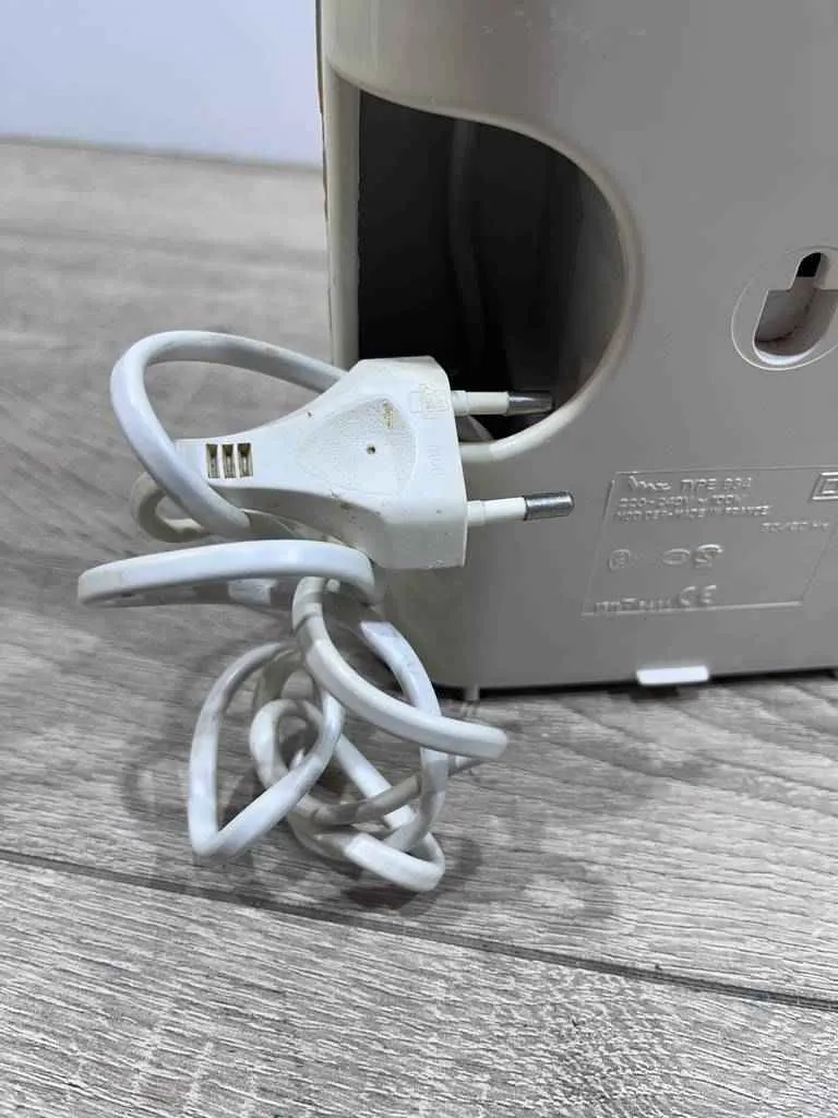 Abrelatas eléctrico de la marca MOULINEX. Este abrelatas es un aparato muy útil que nos permitirá abrir nuestras latas de comida con mucha facilidad y comodidad. Es ideal para colocar en una cocina y darle uso diario. En la parte posterior contiene espacio para guardar el cable y así no nos moleste cuando no le demos uso. Como podemos observar en las fotografías se encuentra algo desgastado, pero en general funciona perfectamente.