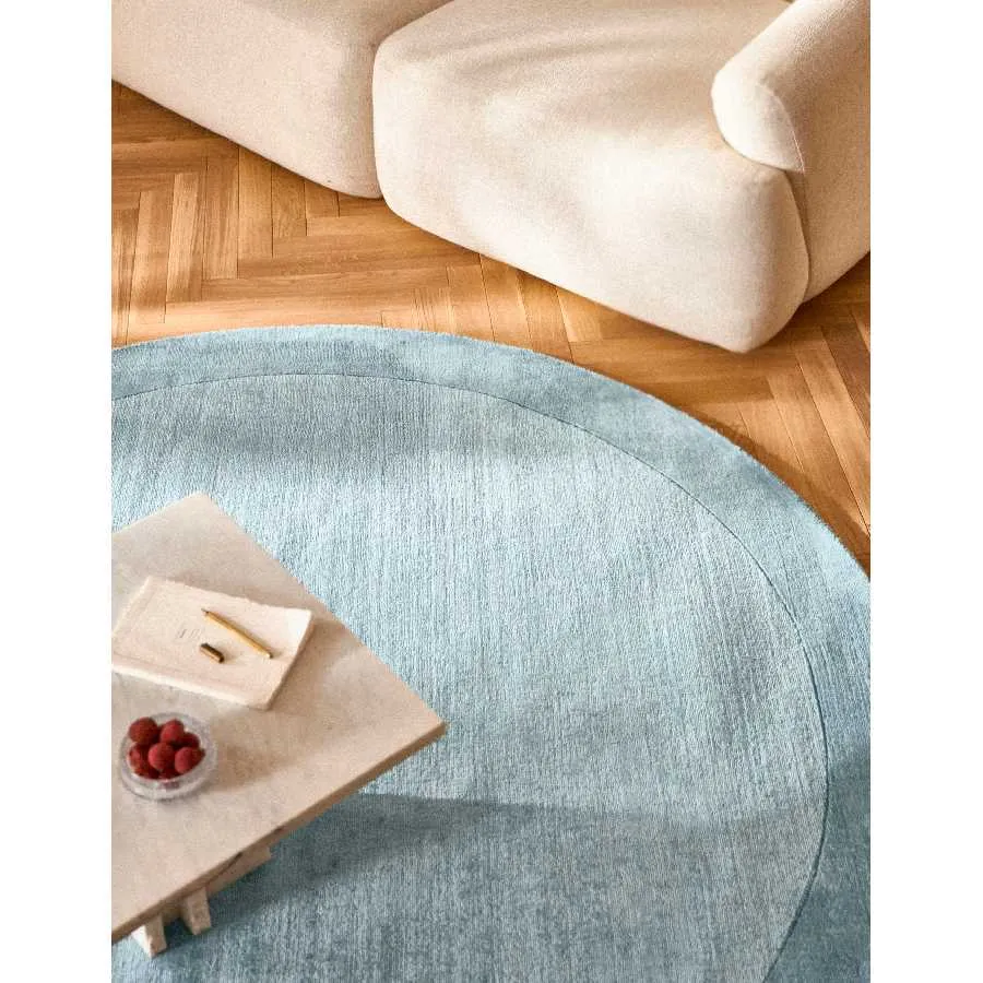 Alfombra redonda de suave pelo corto robusta y de fácil cuidado.