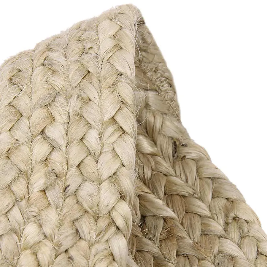 Bonita alfombra redonda hecha a mano con yute resistente.