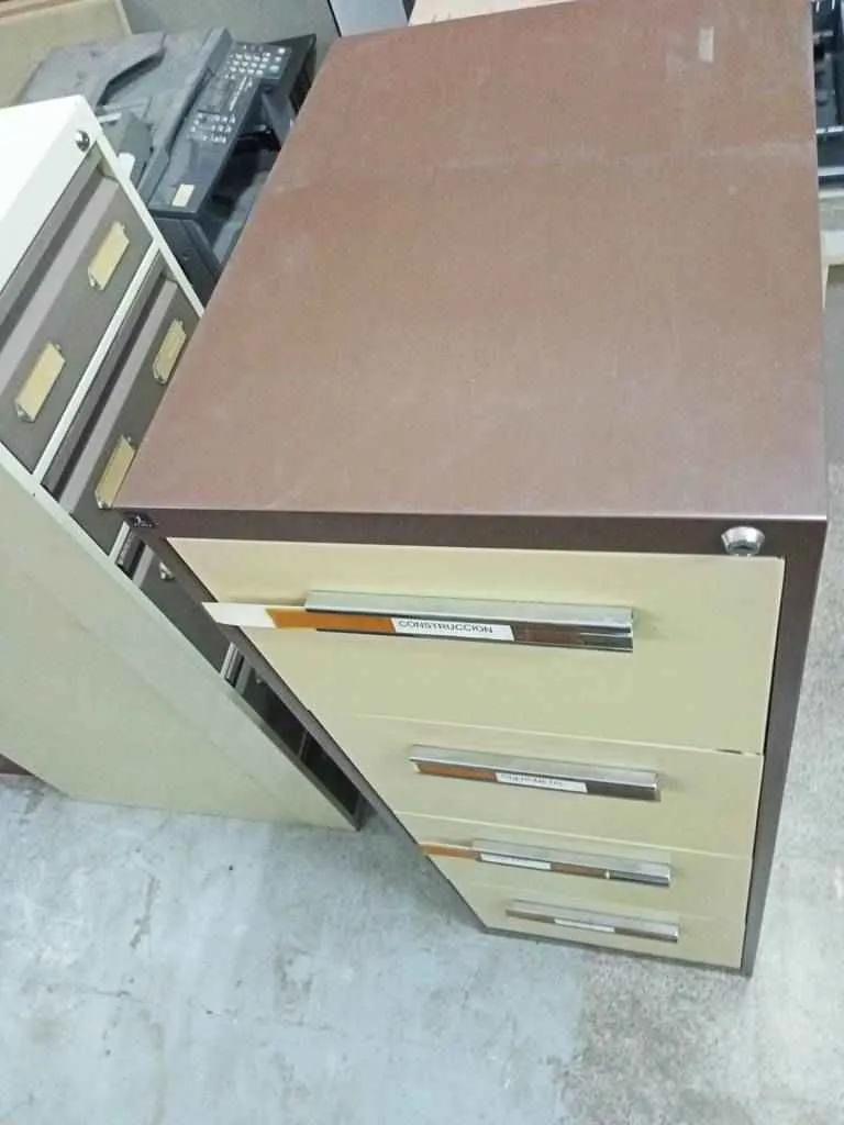 Mueble archivador de tamaño mediano de color marrón. Se trata de un mueble archivador que cuenta con cuatro cajones. Los cajones tienen tiradores en forma alargada y en su interior tienen dos rieles ideados para colgar carpetas de documentos. Es un archivador ideal para tener en un despacho o en un negocio. Como se ve en las imágenes se encuentra en buen estado.
