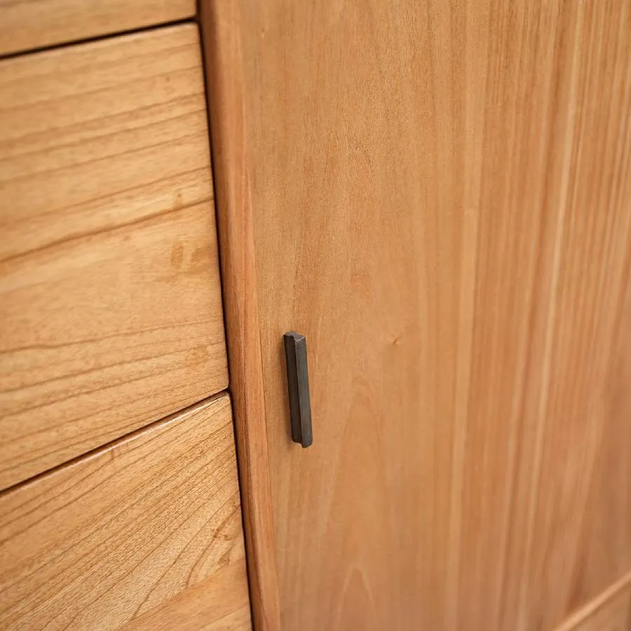 Mueble de almacenamiento de estilo retro fabricado artesanalmente con madera de mindi maciza. Cuenta con 4 cajones pequeños, un cajón grande y 1 espacio. Sus patas inclinadas nos recuerdan al estilo escandinavo.