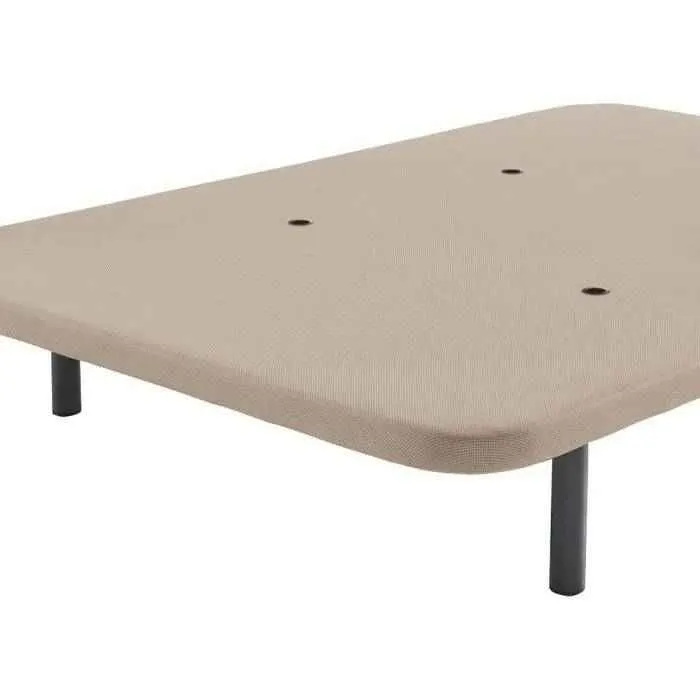 Base tapizada modelo NERVIÓN nueva a estrenar, ideal para colchones de 150x190cm. Está tapizada de tela suave y agradable al tacto color beige. Dispone de 6 robustas patas en la parte baja que le dan una buena estabilidad y firmeza. También tiene 5 refuerzos transversales y tejido 3D transpirable. El armazón es metálico con tubos de 30x30cm. El tablero es de melamina de 3,8mm con cuatro aireadores. Es de fibra de 80gb/m2. Aprovecha esta oportunidad de conseguir una base tapizada de buena calidad a un precio imbatible.