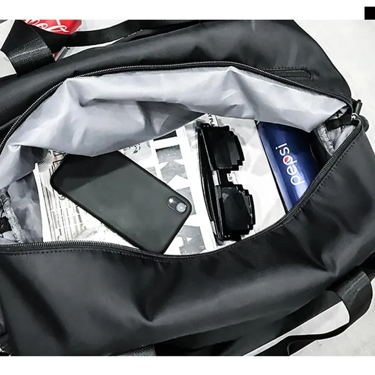 Esta gran bolsa de deporte con acabado satinado es impermeable y dispone de un bolsillo impermeable para su toalla o ropa después de hacer deporte. También tiene un bolsillo lateral para sus zapatillas. Una bolsa útil, práctica y a la moda disponible en cuatro colores para hacer deporte o viajar.