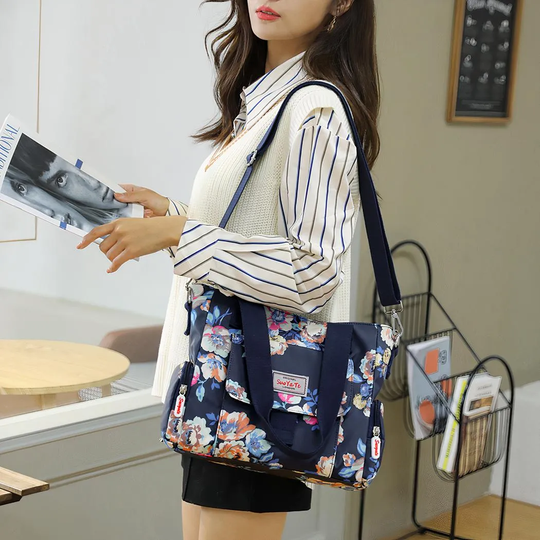 Este bolso de mano con estampado floral para mujer es justo lo que necesita para añadir un toque de estilo a su atuendo de trabajo o de viaje. El tejido de poliéster es moderno y duradero, lo que lo convierte en una opción perfecta para el uso diario.