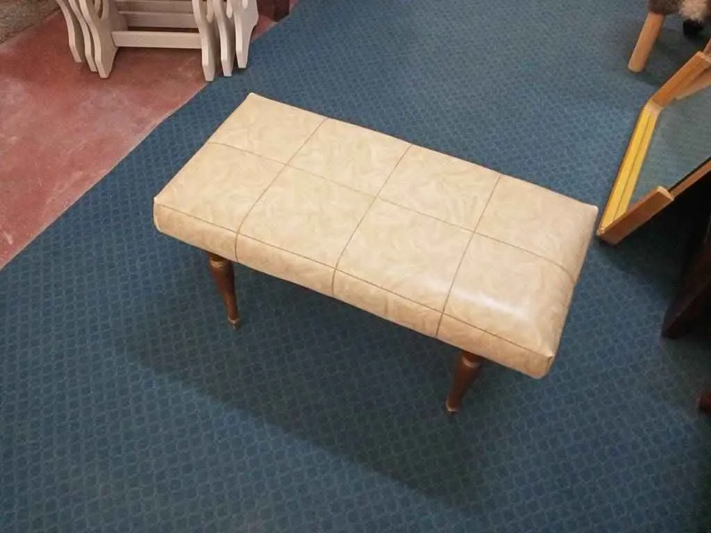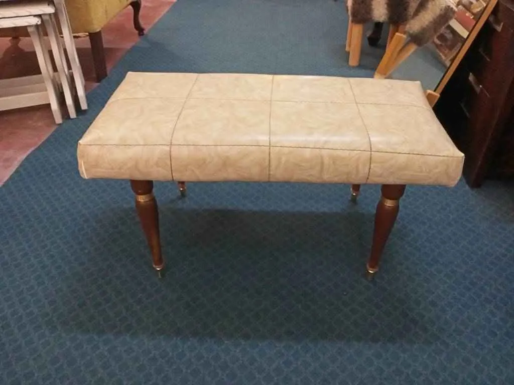Butaca de tamaño mediano que dispone en la parte superior de un cojín tapizado en color crema muy acolchado y cómodo. Tiene cuatro patas de madera robusta en la parte inferior que la hacen muy estable. Es ideal para colocar en un dormitorio como descalzadora y aportar ese toque elegante a nuestra estancia. Como podemos observar en las fotografías presenta pequeños rasguños, pero en general se encuentra en buenas condiciones.
