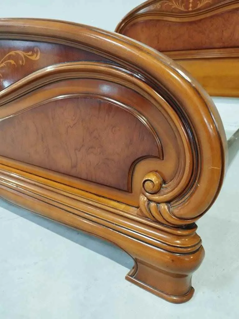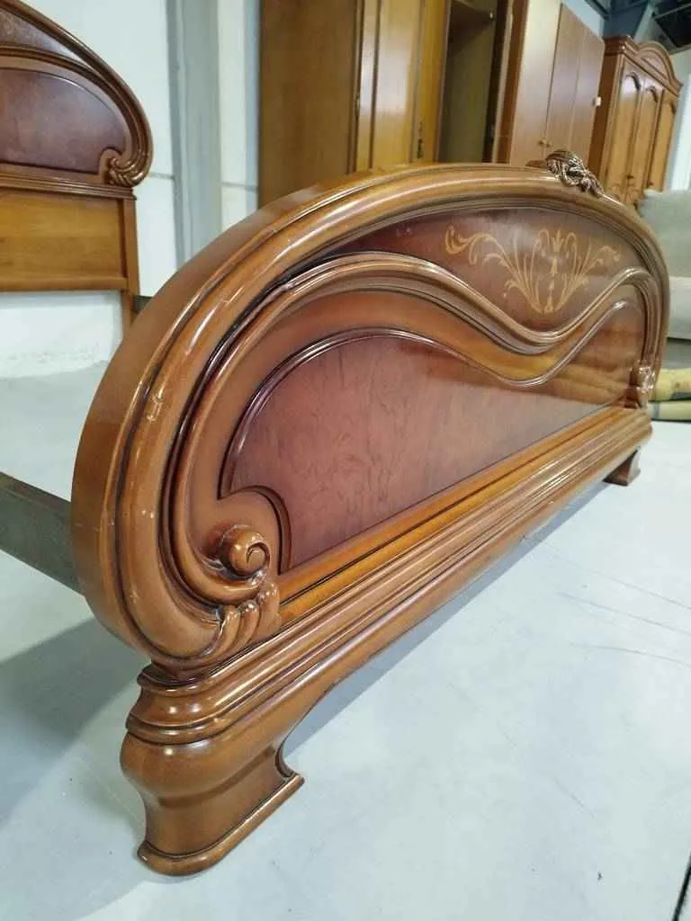 Cama fabricada en madera de buena calidad de color marrón oscuro. Se trata de una cama de estilo clásico perfecta para colocar un colchón de ciento treinta centímetros de ancho y ciento noventa centímetros de largo. Es una cama con un cabecero con detalle y un pie de cama muy elegante. Es ideal para colocarla en un dormitorio de matrimonio de estilo vintage. Como se puede observar en las fotografías se encuentra en buenas condiciones.
