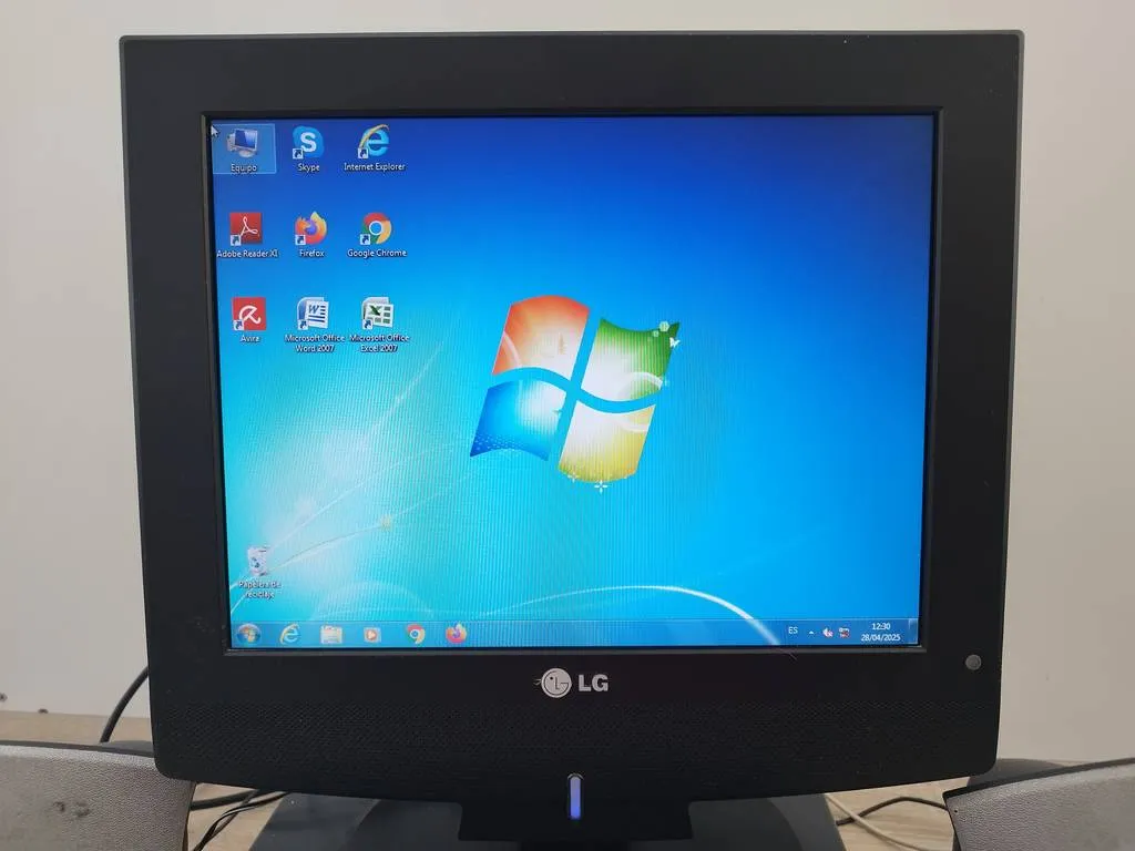 Conjunto de ordenador formado por un monitor de la marca LG, dos altavoces, un teclado y una computadora de la marca Lenovo. Se trata de un conjunto de ordenador completo que tiene una pequeña pantalla, dos altavoces, una computadora, un teclado y un ratón. Es un conjunto ideal para tenerlo encima de una mesa en un estudio. Como se ve en las imágenes está en buen estado y funciona correctamente.