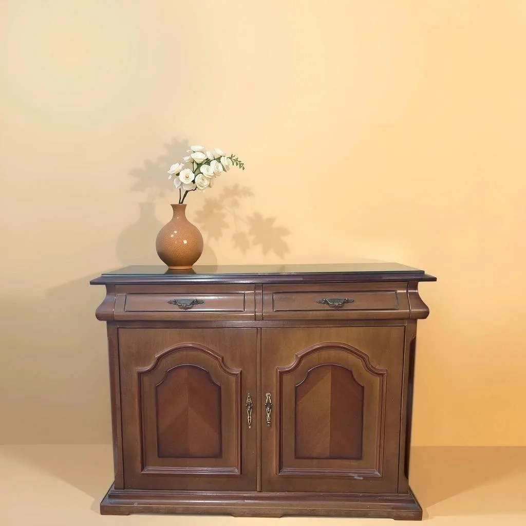Escritorio fabricado en madera de buena calidad de color marrón oscuro. Se trata de un escritorio que tiene dos columnas con cuatro cajones en ambos laterales. Los cajones no disponen de tiradores, pero resultan muy útiles para guardar objetos o enseres. Es un escritorio ideal para ponerlo en el estudio de un hogar. Como se puede observar en las fotografías se encuentra en buenas condiciones.