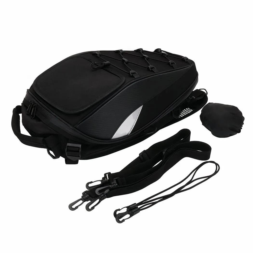 Esta mochila impermeable para el asiento trasero ha sido diseñada pensando en los motoristas. Impermeable y cómoda, también se puede colocar en el asiento trasero de su moto utilizando las correas suministradas con la bolsa. Adapta su capacidad a la cantidad que desee transportar.