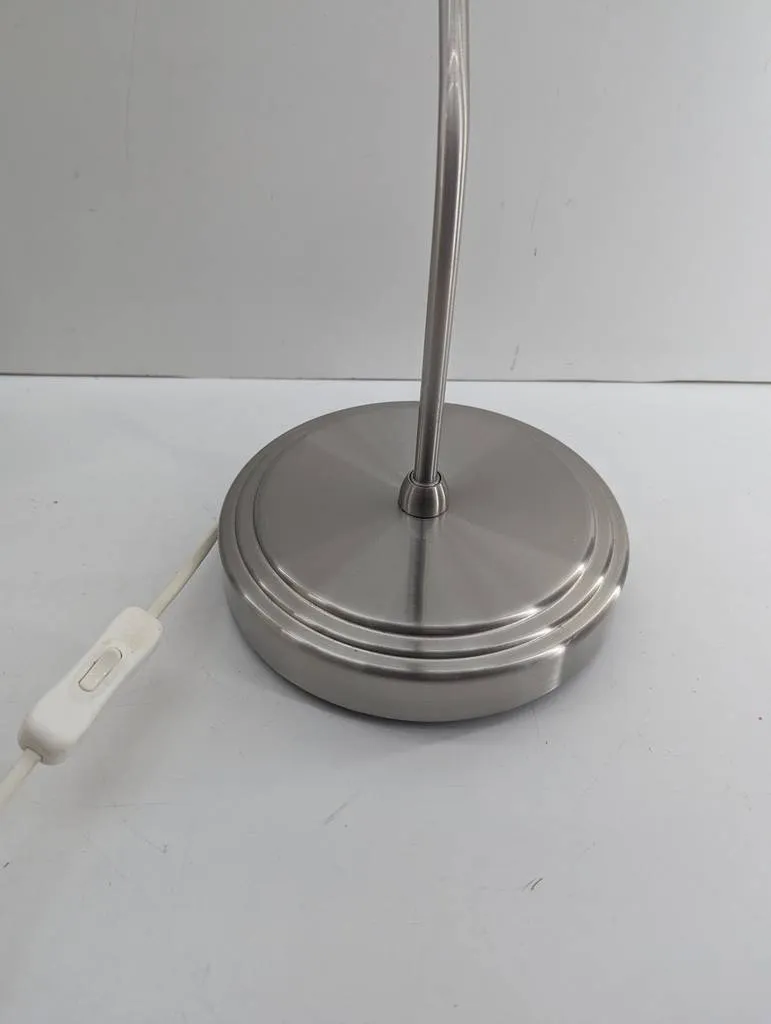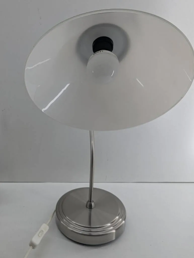 Lámpara de mesa de la reconocida tienda de muebles sueca Ikea. Se trata de una lámpara que tiene una base circular, un fino soporte de color plateado y una tulipa amplia de color blanco. Es una lámpara ideal para tenerla encima de una mesa o de un escritorio para leer o estudiar. Como se puede observar en las fotografías se encuentra en buenas condiciones.