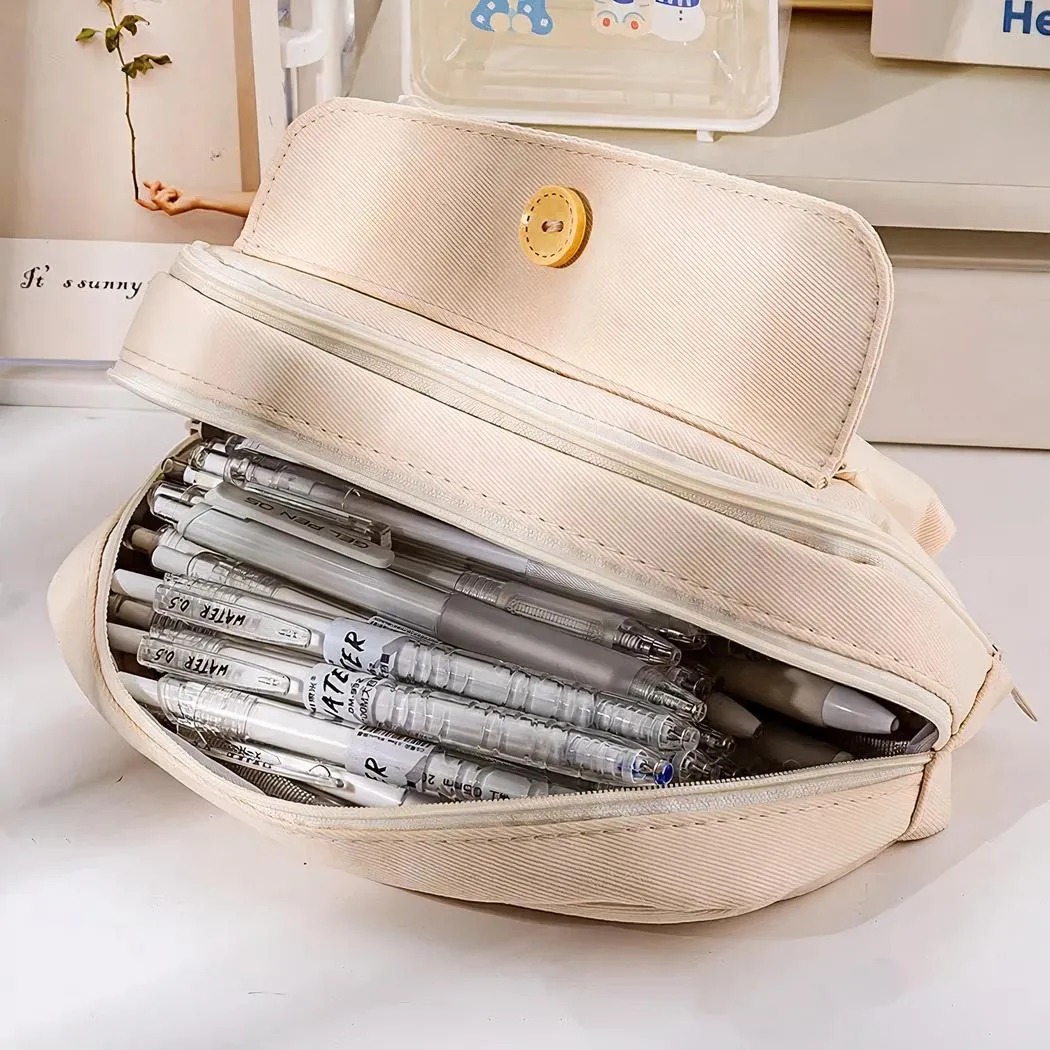 Descubra y adopte el estuche multi-compartimentos para lápices, para una organización elegante y funcional de sus útiles. Disponible en cinco colores. Dispone de varios compartimentos, incluido un bolsillo frontal con botón. Ideal para estudiantes, artistas y profesionales, se desliza fácilmente en cualquier tipo de bolso.