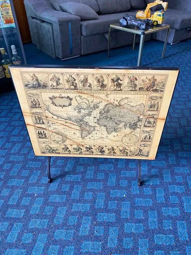 Cuadro del mapa del mundo en el año 1668 del famoso editor, impresor y marchante de estampas neerlandés Frederik de Wit. En él podemos observar el mundo y alrededor de este múltiples personalidades a caballo entre otros menesteres. Es una pieza única ideal para coleccionistas o amantes de la historia. Como podemos observar en las fotografías presenta desgaste del tiempo.