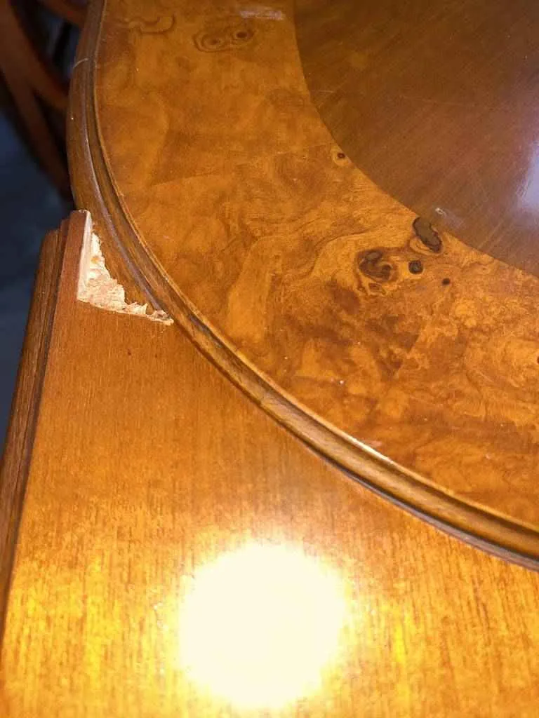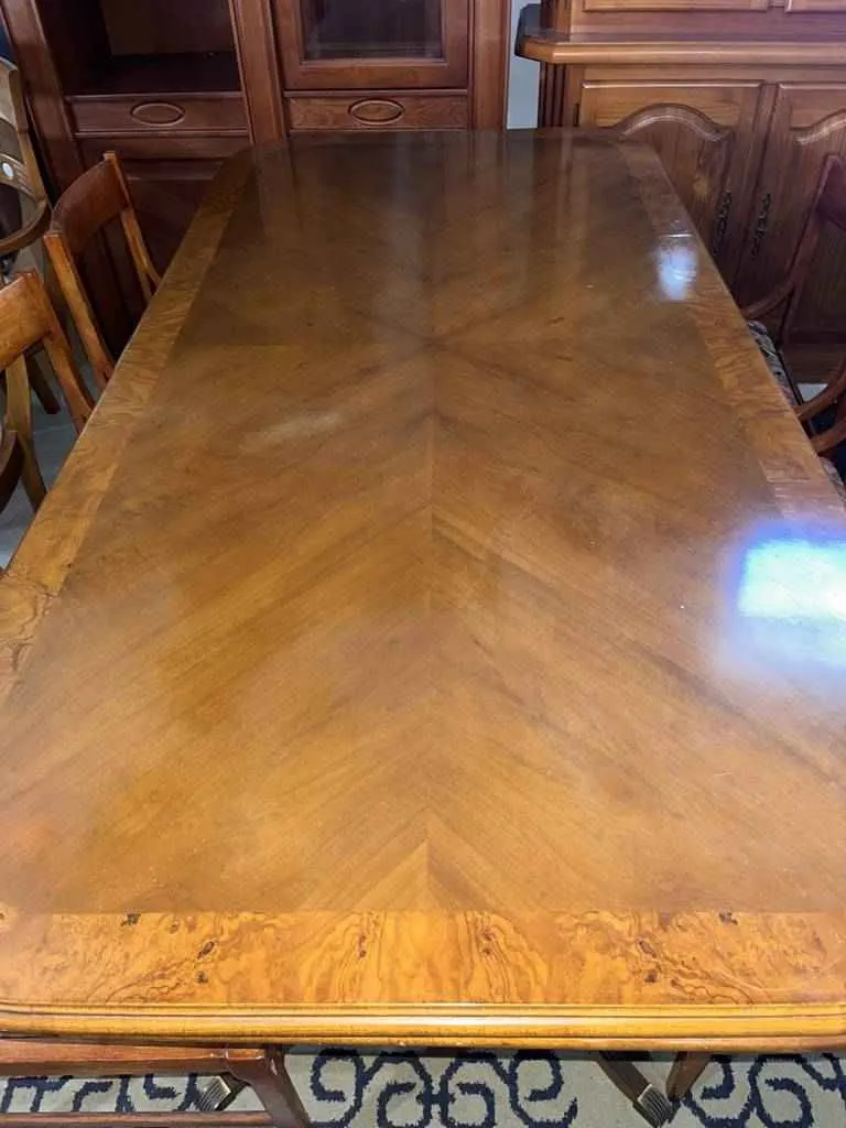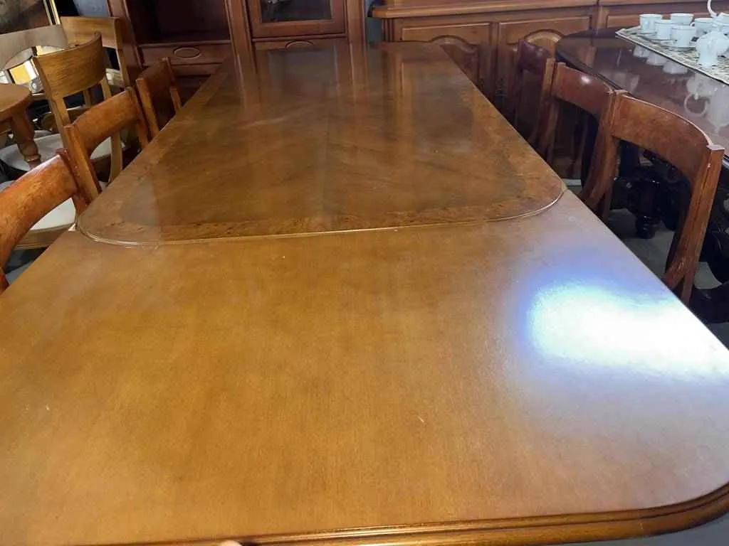 Mesa de estilo clásico y elegante que ha sido fabricada con madera de buena calidad y robusta. Se trata de una mesa con forma rectangular que podemos extender fácilmente gracias a una balda grande adherida en la parte inferior. Es una mesa ideal para colocar en un salón comedor y recibir gran cantidad de invitados. Como podemos observar en las fotografías presenta desperfectos.