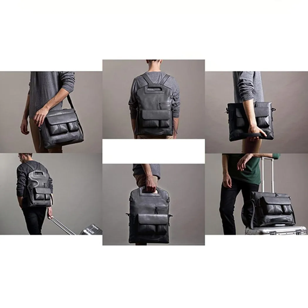 Una mochila de cuero de diseño para hombre. Puede llevar esta bolsa de diferentes maneras, en la mano, como satchel, al hombro o incluso puede colgarla de su maleta. Una bolsa que le seguirá a todas partes, para todas las ocasiones, trabajo, ocio, viajes.
