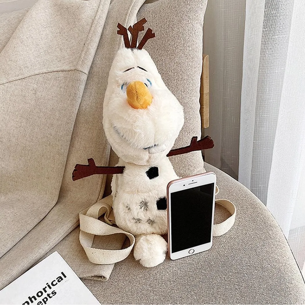 Esta mochila de peluche de Olaf es una simpática bolsa con el famoso muñeco de nieve. Una bolsa de peluche del mejor amigo de Elsa y Anna. Olaf tiene un pequeño bolsillo en la parte trasera para guardar lo que quiera, por ejemplo las figuritas favoritas de su hijo.