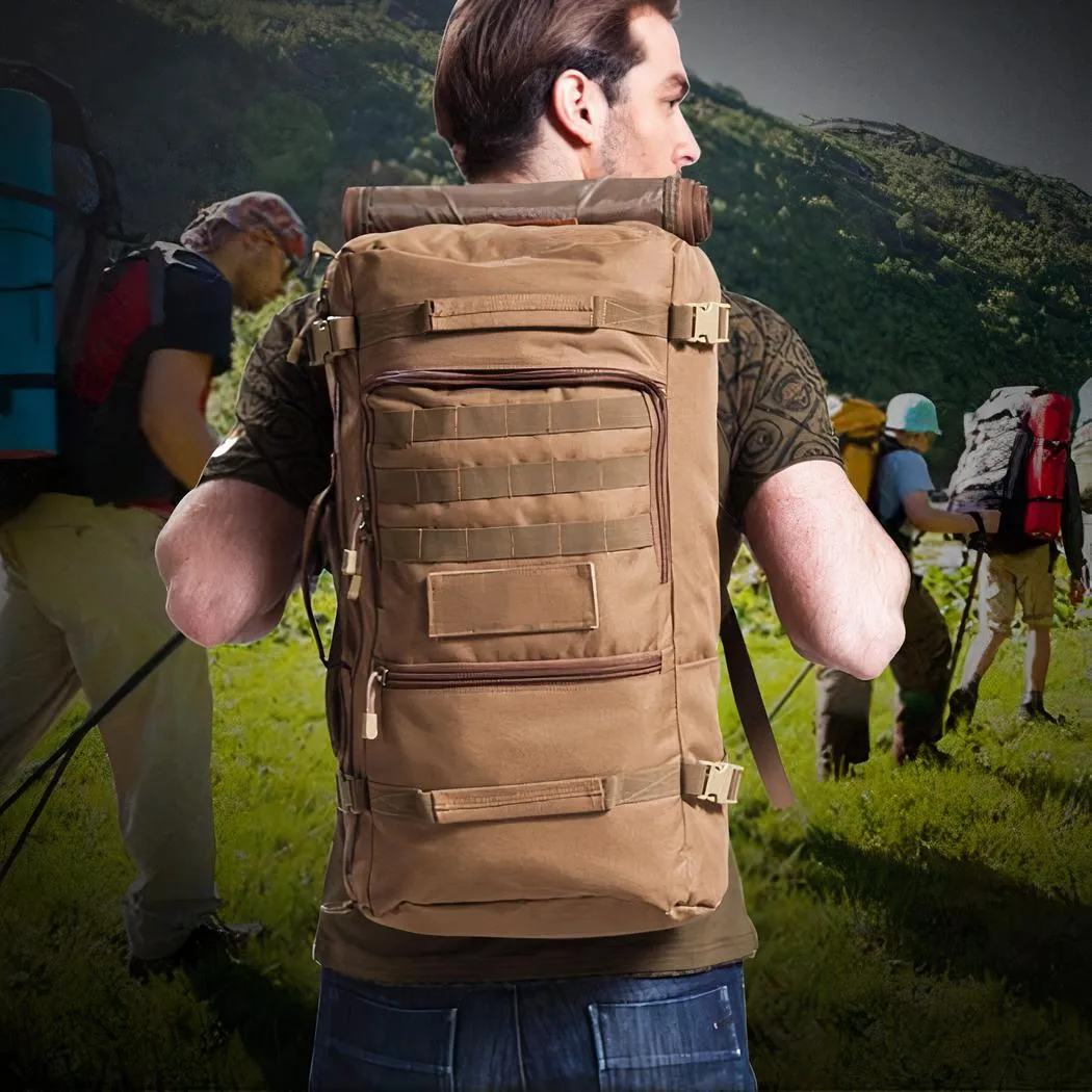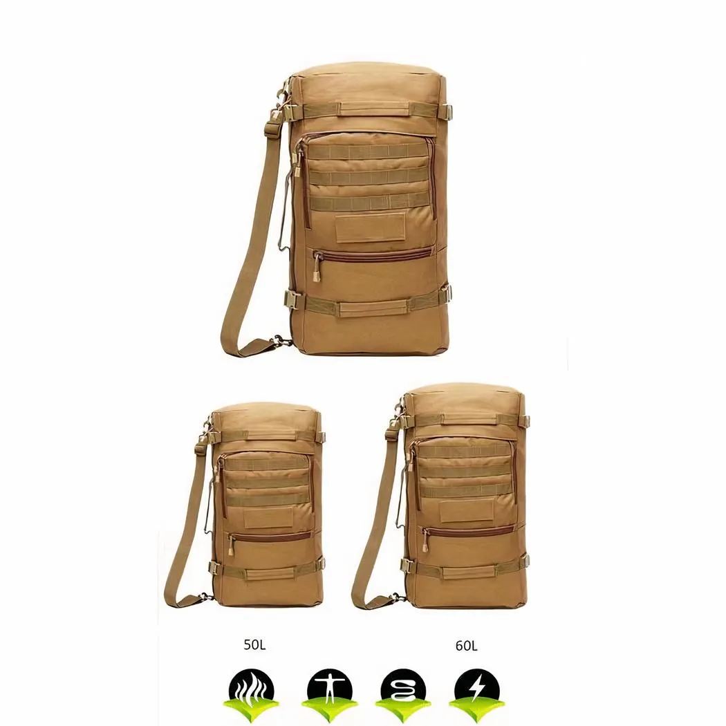 Descubra esta mochila militar con compartimento funcional para el portátil, disponible en 50 o 60L, que le ofrece una comodidad inigualable con sus diversas opciones de transporte: a mano, al hombro o como mochila. Fabricada en nailon resistente, es perfecta para todas sus excursiones.