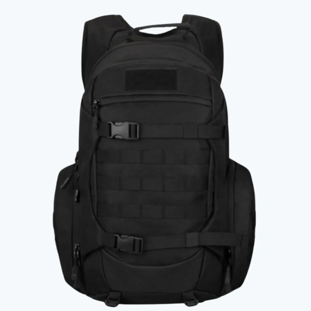 Descubra esta mochila militar negra de 40L. Fabricada íntegramente en nailon, es resistente y ligera. Su forma ergonómica garantiza una comodidad y sujeción ideales. Viene con una correa pectoral y otra abdominal para una mayor movilidad y un mejor ajuste.