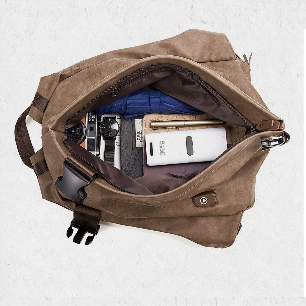 Esta mochila para portátil de 15” en polipiel ha sido diseñada para transportar su ordenador portátil. Su bolsillo trasero principal se abre para introducir su portátil en su interior, mientras que la parte delantera tiene un bolsillo con capacidad para 20 litros. Esta mochila también tiene un puerto USB 3.0 en el lateral.