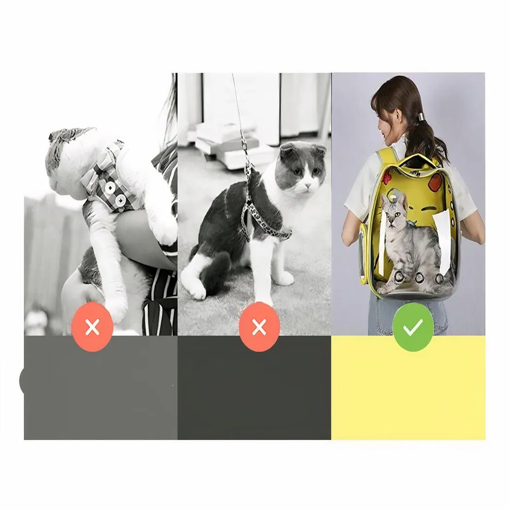 Sacar a pasear a su gato será coser y cantar con esta mochila transparente de dibujos animados para gatos. Su compañero se sentirá a gusto gracias a los tres grandes orificios por los que entra el aire para que pueda respirar con facilidad. Además, su diseño transparente hace que el viaje sea más agradable.