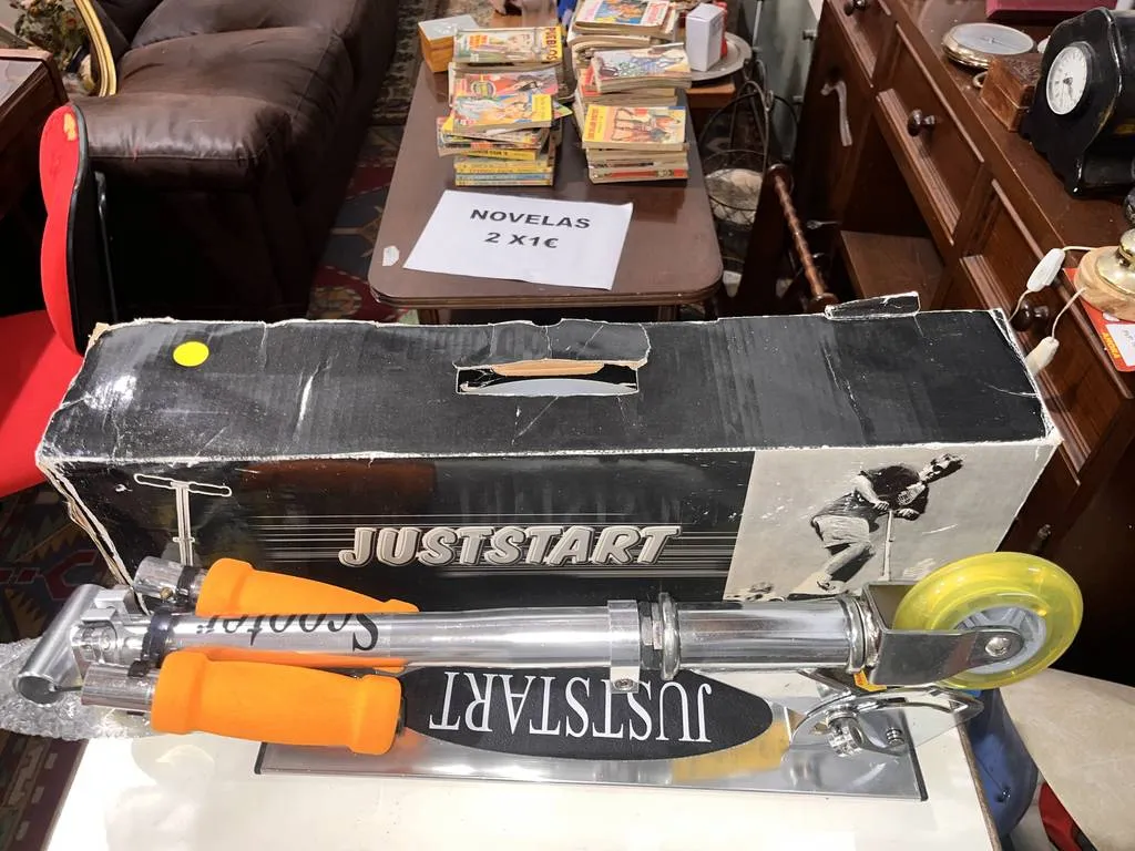 Patinete nueva a estrenar de la marca Juststart. Se trata de un patinete ideal para regalo a un niño o adolescente. Se pliega fácilmente y no ocupa mucho espacio. Sus asas acolchadas son de agarre cómodo. Como podemos observar en las fotografías se encuentra en buenas condiciones. Aprovecha esta oportunidad de conseguir un patinete a un precio muy económico.