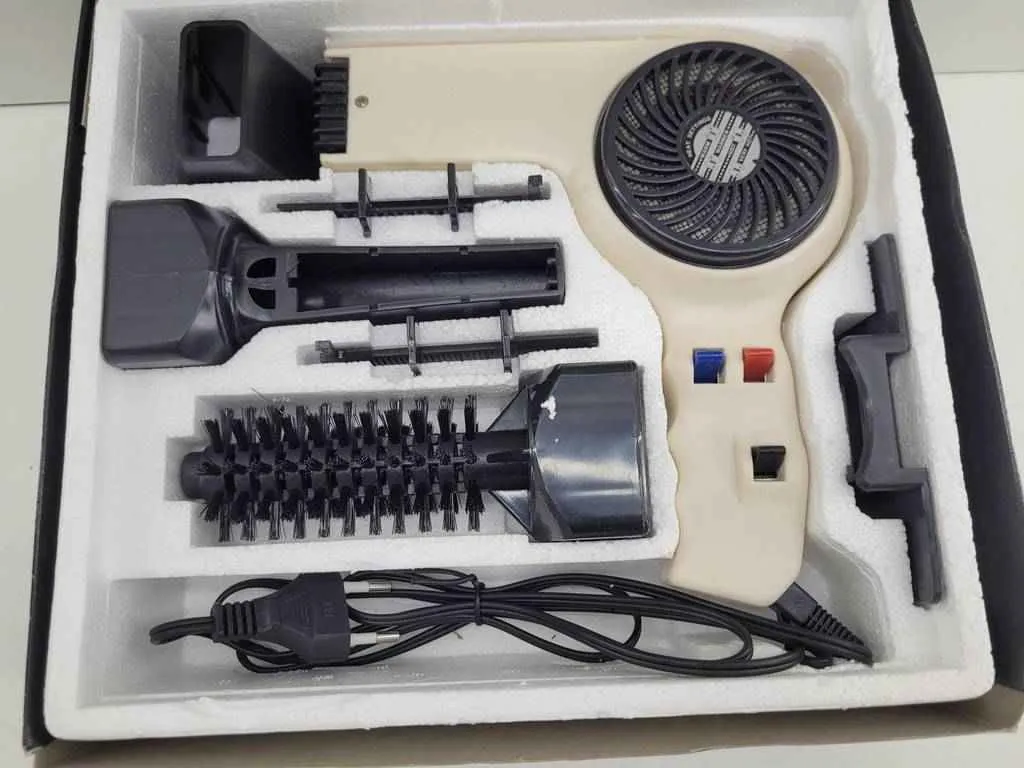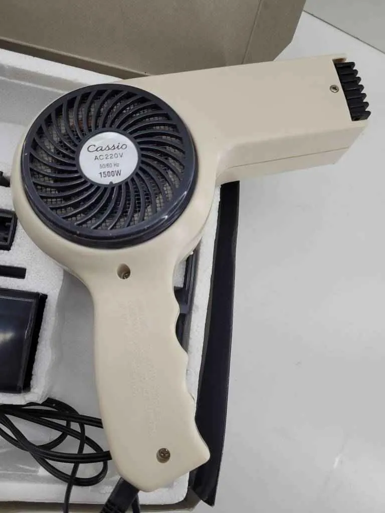 Secador de pelo de la marca Cassio modelo Compact Pro de color blanco. Se trata de un secador de pelo que va en su caja original y dispone de una amplia variedad de accesorios para el peinado. Es un secador perfecto para tenerlo en cualquier hogar ya que resulta muy práctico y útil. Como se puede observar en las fotografías tanto el secador como todos los accesorios se encuentran muy bien cuidados y conservados en su caja original.