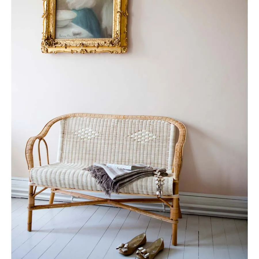 Sofá pequeño de ratán de KOK. Diseño natural y rústico.