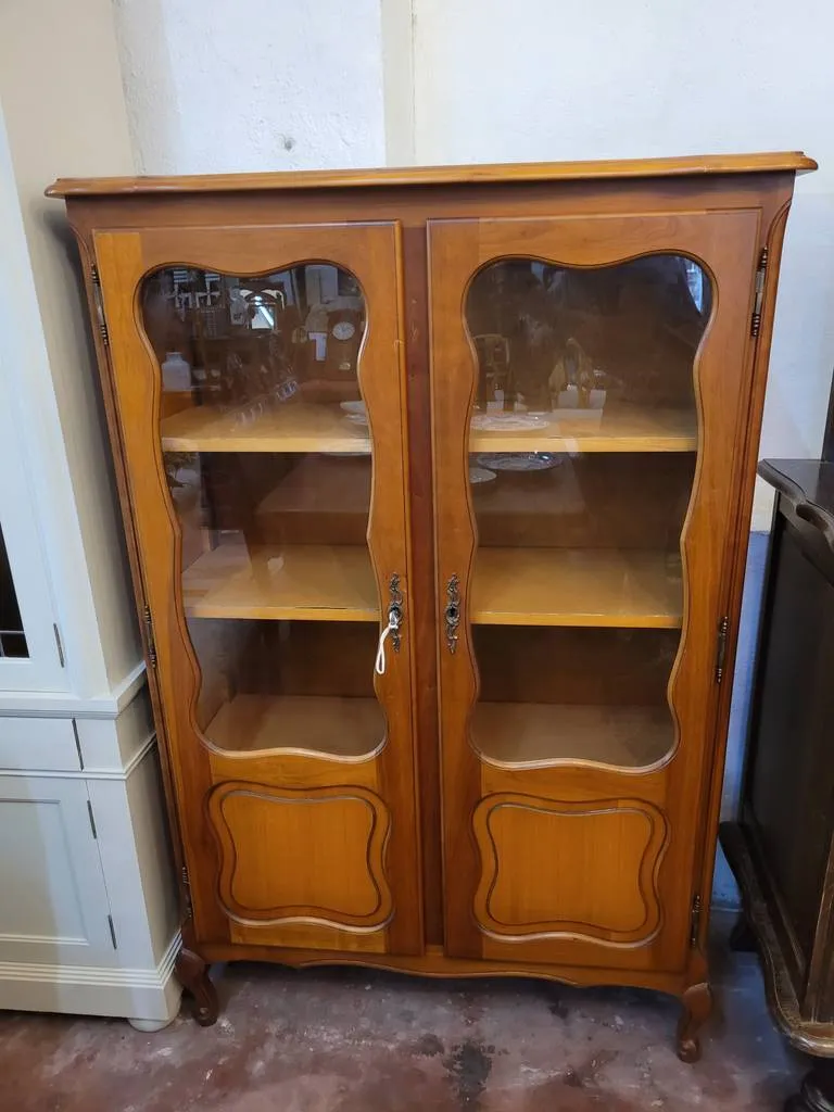 Vitrina de estilo clásico y elegante que ha sido fabricada con madera de buena calidad y robusta. Se compone de una parte frontal con dos puertas a modo de vitrina. En su interior dispone de múltiples baldas amplias y altas ideales para colocar una colección de figuras o libros. Es ideal para colocar en un salón comedor. Como podemos observar en las fotografías se encuentra en buenas condiciones.