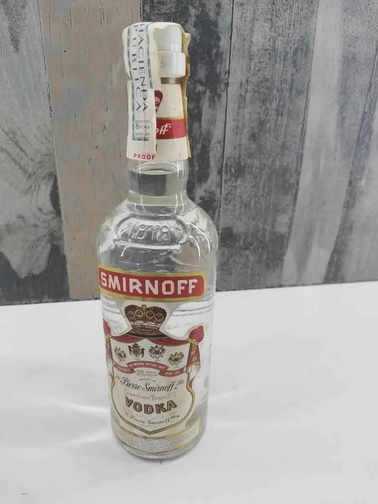 Antiguas botellas de vodka Smirnoff aún con su precinto intacto. Se trata de unas botellas de los años 70 las cuales disponen todavía del sello protector de impuesto, indicado en las antiguas pesetas. Son unas botellas con más de medio siglo de antigüedad, ideales tanto para coleccionistas de antigüedades como también para decoración. El alcohol se encuentra en buen estado, aunque puede haber perdido calidad debido al tiempo que tiene. No podemos garantizar su estado, ya que está sin abrir.
